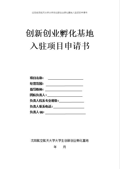 沈阳航空航天大学大学生创新创业孵化基地入驻项目申请书