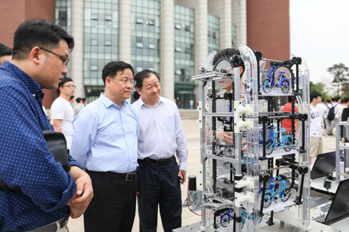 林峰在致词中表示,为了深入贯彻国家创新创业教育政策,深化学校创新创业教育,学校启动了每年一届的沈航创新创业科技节。首届科技节由智出发,全情开启科技的魅力,将围绕基础学科、学科技能、艺术设计、智能机器人、商业创业五大主题,分设创业路演、科技成果大赛、科技知识大赛、科技成果展、科技表演五大模块,开启了异彩纷呈的科技盛宴。