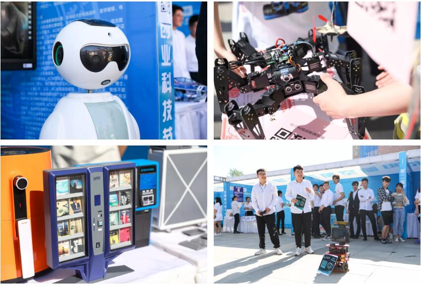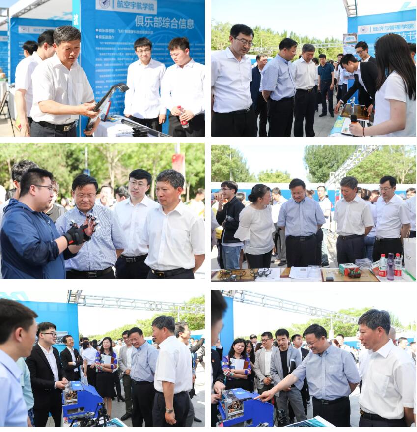 开幕式启动仪式后,全体校领导、参会嘉宾移步到会场外的大学生科技创新俱乐部路演展区进行了参观。2019年获批的SH智能机器人俱乐部、创客空间俱乐部、空天机构创新俱乐部,飞行+制造梦科技创新俱乐部等23个大学生科技创新俱乐部在现场进行路演和纳新活动,校领导饶有兴趣的参观了各俱乐部的项目路演,并提出了宝贵的建设性意见和建议,为大学生科技俱乐部的建设、科技竞赛和创新创业工作指明了发展方向。