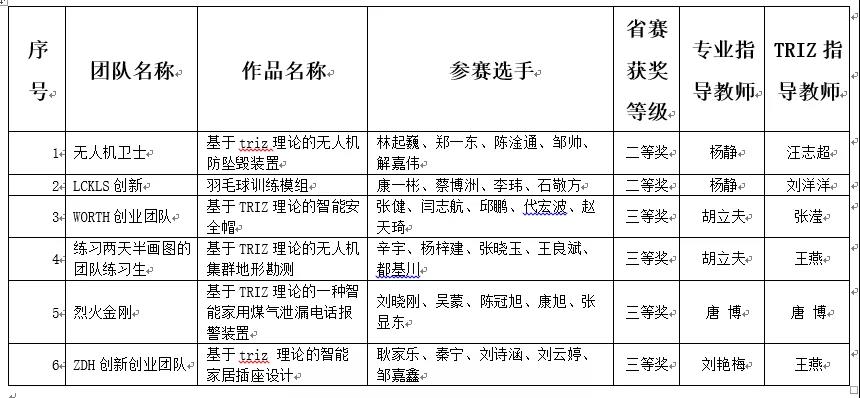 第五届辽宁省TRIZ杯大学生创新方法大赛于9月20—22日在大连理工大学举行,这是我校首次组织参加本项比赛。我校6件入围作品中创意设计类作品“基于triz理论的无人机防坠毁装置”和“羽毛球训练模组”喜获二等奖,4件作品获三等奖。
