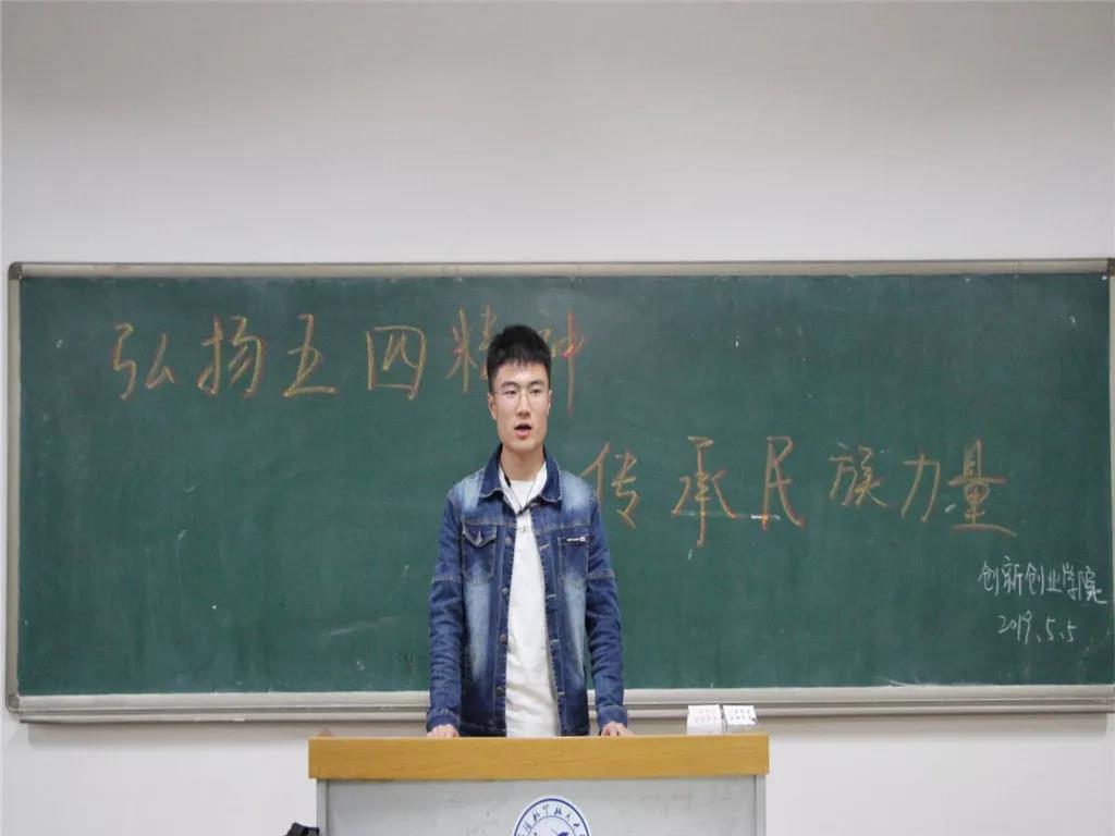 为纪念五四运动100周年,积极响应习近平总书记关于加强对五四运动和五四精神研究的号召,加深对五四运动历史意义和时代价值的认识,2019年5月5日,创新创业学院团委在教学楼A324开展了“弘扬五四精神,传承民族力量”主题团学活动,组织同学观看习近平总书记在纪念五四运动100周年大会上的讲话。创新创业学院17级同学出席了此次团学活动。