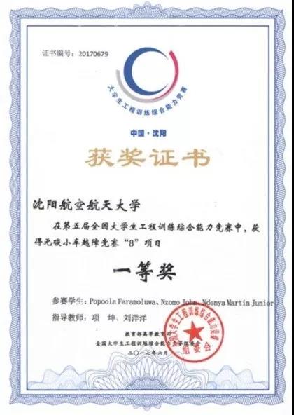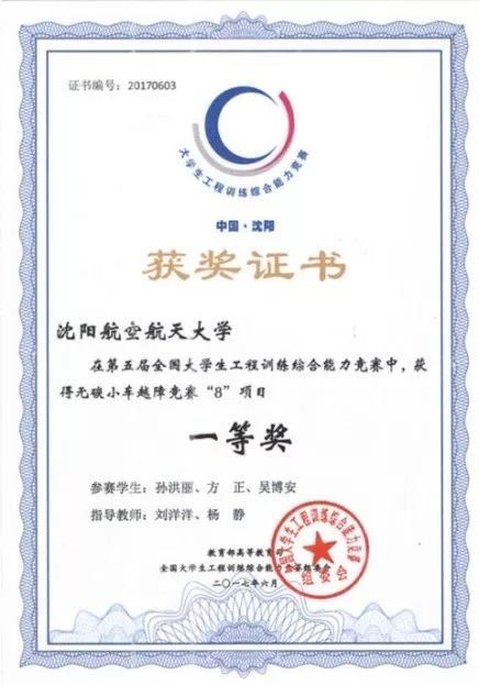 2017年,第五届全国大学生工程训练综合能力竞赛国家级一等奖两项,国家级二等奖一项,国家级三等奖三项。