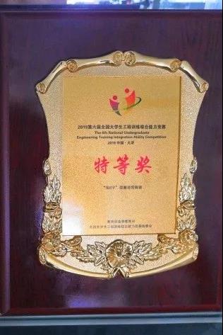 2019年,第六届全国大学生工程训练综合能力竞赛国家级特等奖两项,国家级一等奖一项,国家级二等奖一项,国家级三等奖三项;
