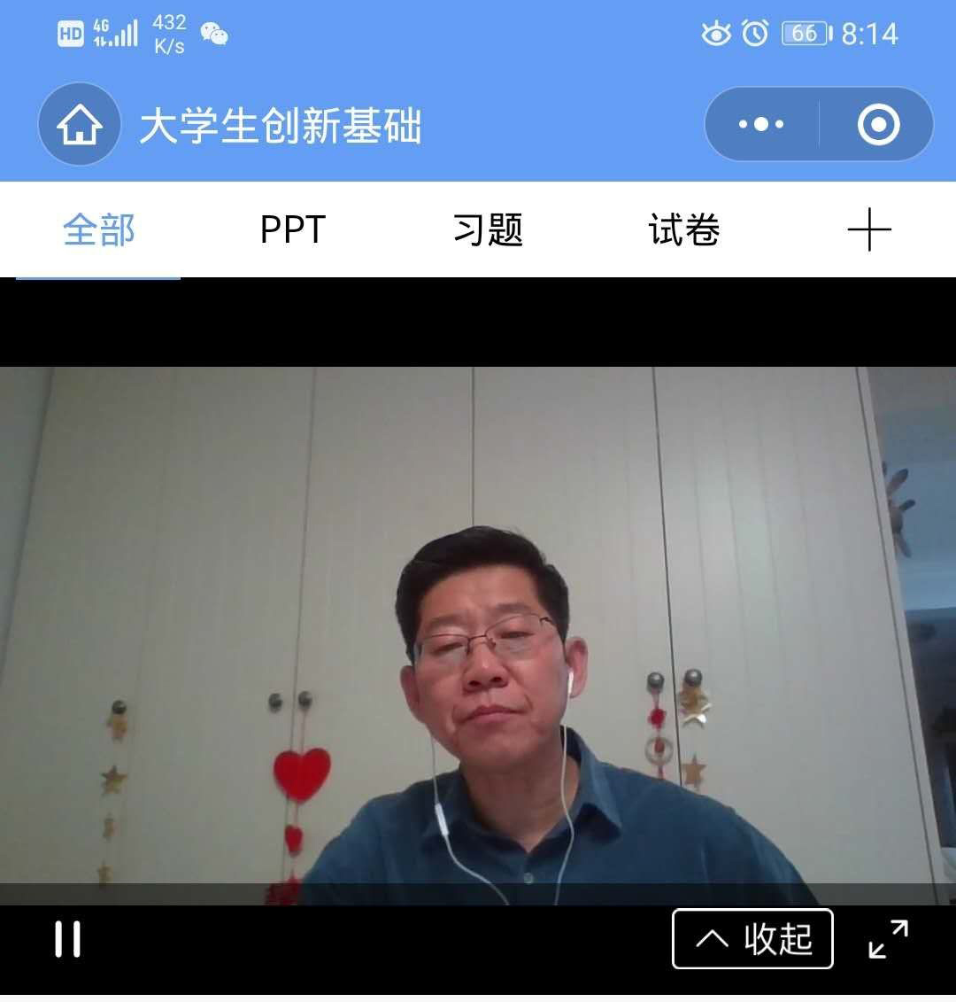 周一9-10节 刘伟力老师利用雨课堂直播讲授《大学生创新基础》,错峰时刻,效果棒棒的!