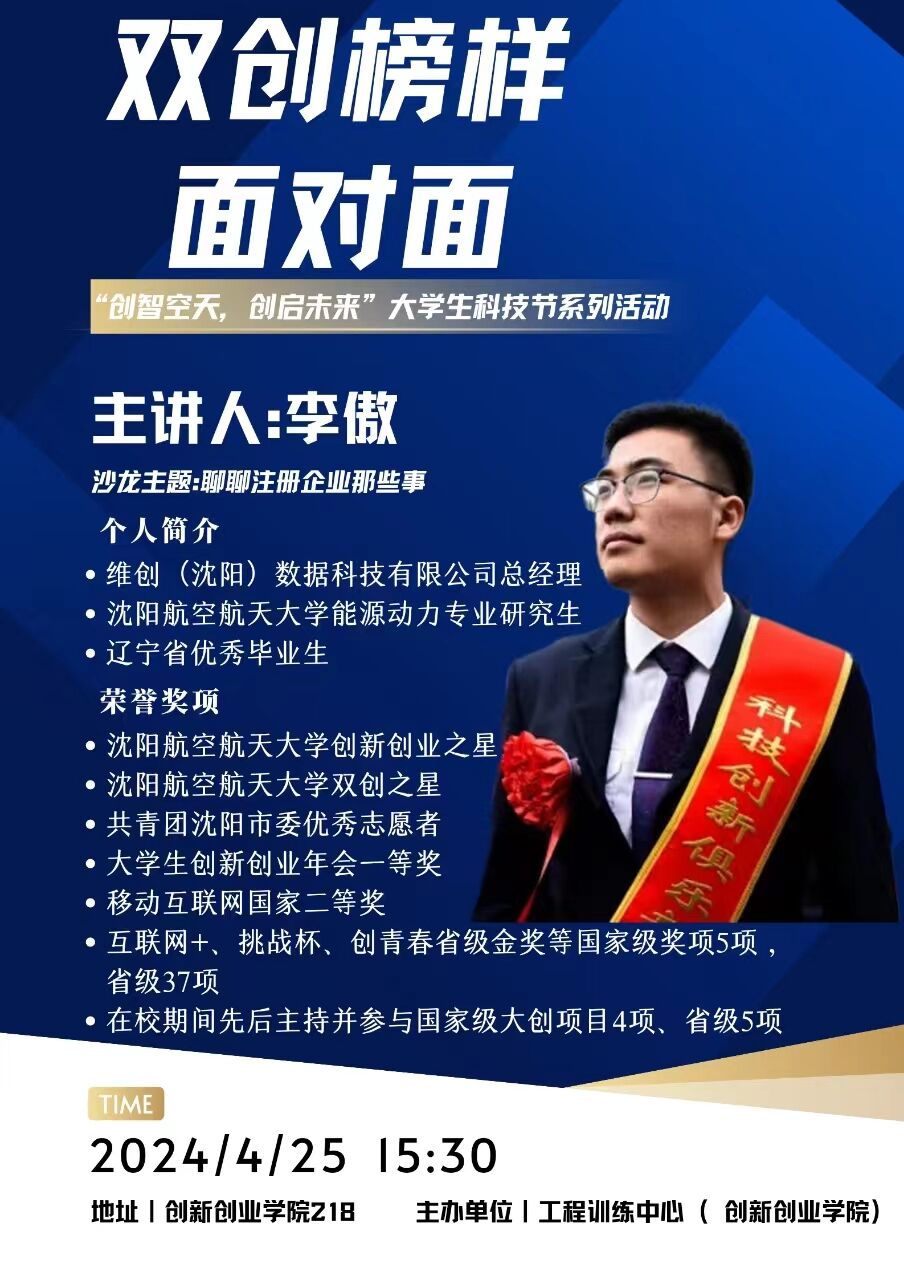 第六届创新创业科技节——双创榜样面对面沙龙将于4月25日15:30分在创新创业楼218室开展第一期活动,诚挚邀请您共赴创新创业之旅!