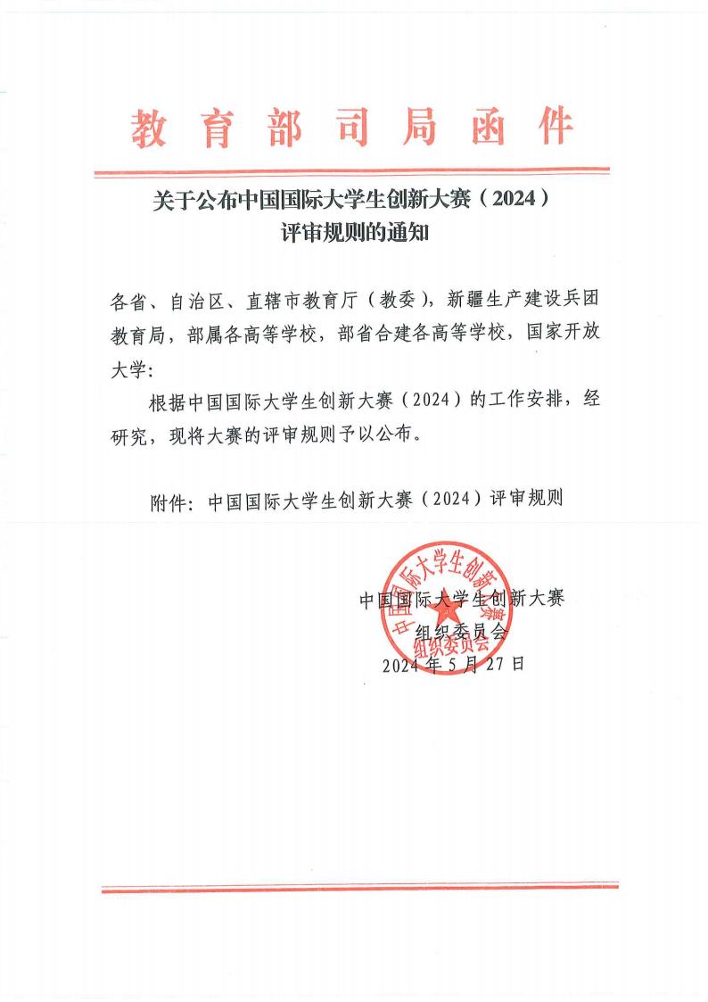 关于公布中国国际大学生创新大赛(2024)评审规则的通知
