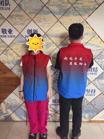 为了给各学院参加科技竞赛的团队提振士气,向全省乃至全国展示我校学子朝气蓬勃的精神面貌和勤奋、严谨、求实、创新的精神品质,我院定制了100件参赛队服,队服红蓝基调象征着赓续红色血脉,厚植蓝色情怀,正面印有我校校徽和校名,反面印有我校校训(在不可以出现学校名称的竞赛中使用)。