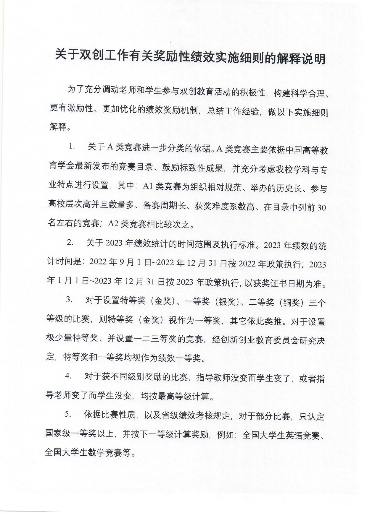 关于双创工作有关奖励性绩效实施细则的解释说明