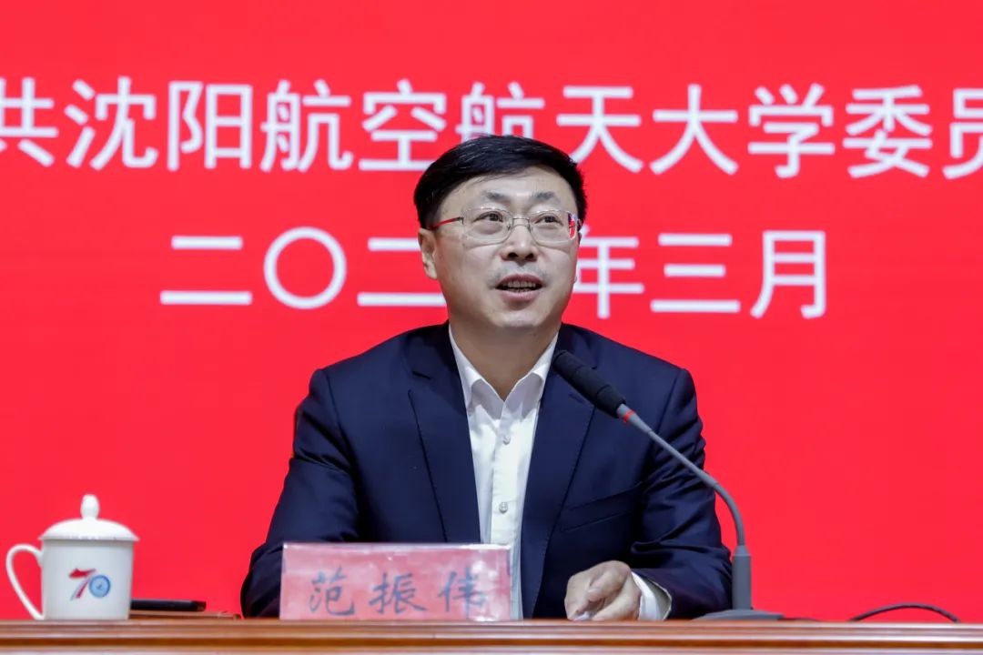 范振伟指出,要深刻领会第三次党代会精神,精准把握高质量发展的发力方向。一是要坚持“一条主线”。扎实推进“一融双高”建设,坚持以高质量党建引领学校事业高质量发展,做到一张蓝图绘到底;二是要做好“两个遵循”。坚持做好守正创新,坚持“以本为本”,提升优势特色学科建设水平,聚焦本科人才培养特色,坚持研究应用型大学的办学方向,积极做好科技创新、体制创新和管理创新;三是要把握“三大机遇”。牢牢抓住空天强国快速发展、辽宁全面振兴发展、高校学科专业优化调整等三大重要战略机遇期,迎接挑战,乘势而上,将学校各项事业抓紧抓好;四是要聚焦“四大瓶颈”。紧紧围绕“质量、特色、活力、观念”四个方面内容,强化顶层设计,深化体制改革,加强内涵建设;五是要实施“五大工程”。精准把握高质量发展的发力方向,实施好“以本为本”前提下的质量提升工程、以标志性成果为导向的科研跃升工程、以龙头学科为牵引的学科提升工程、以两级管理为目标的管理创新工程和以党建为载体的班子建设铸魂工程。