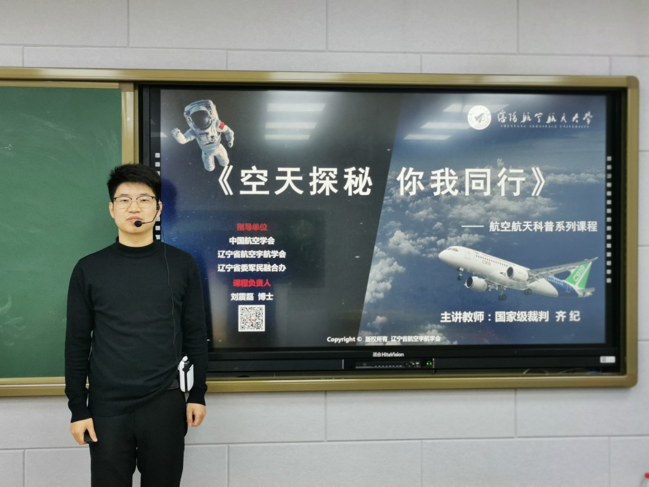 航空航天科普系列课程是辽宁省航空宇航学会与沈阳航空航天大学博士教学团队共同研发的航空航天类科普系列课程。科普课程主讲教师齐纪是国家级航空航天模型赛事裁判、国家级航海模型锦标赛裁判,辽宁省航空宇航学会科普委员会培训师,《空天探秘 你我同行》航空航天科普系列课程研发团队核心成员,辽宁省国防科技工业办公室《航空航天——科普知识手册》编委会成员。科普课程教学团队成员均由辽宁省航空宇航学会考核认定,教学团队以“1+3+1”的教师人员配比,即“一名认证主讲老师+三名认证班主任老师+一名安全员”,主讲教师专心负责给学员授课,每次授课前经过无数次试讲,保证授课质量;班主任负责实验课程辅导,反馈学员学习情况,以及针对性的复习,最重要的是1对1辅导,直到学生知识点完全理解;安全员负责课堂生学生的安全,同时兼顾摄影师。